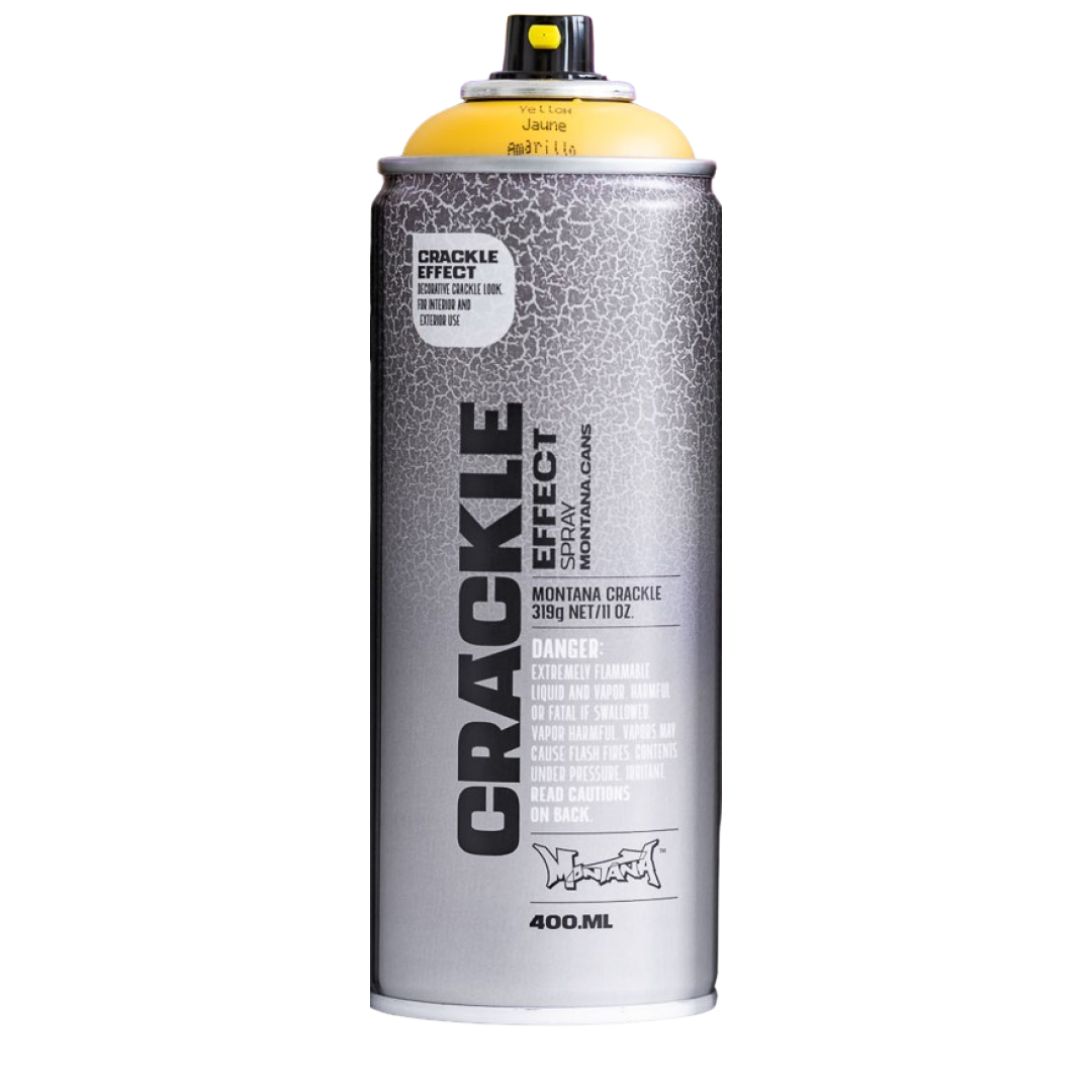 MONTANA CRACKLE EFFECT SPRAY – декоративная отделочная аэрозольная краска. Создает на поверхности эффект кракелюра, растрескивания. Краска наносится на окрашенную или грунтованную поверхность. Устойчивость краски к внешним воздействиям увеличивается при покрытии слоем бесцветного лака.