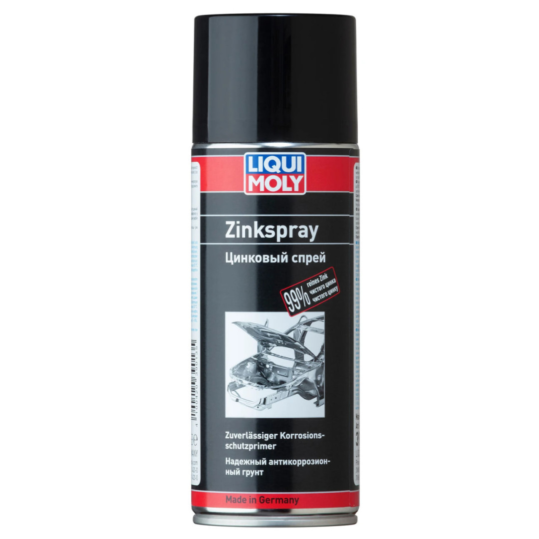 Грунт LIQUI MOLY Zinc Spray – цинковая грунтовка, состоящая на 99% из высокоочищенного цинка для обработки поверхностей с целью их защиты. Обеспечивает защиту от коррозии всех стальных и железных поверхностей, особенно сварные швы. Обеспечивается нанесение прочного слоя для активной электрохимической защиты металла до +400 °C. Обеспечивает отличный внешний вид. Подходит к лакировке. Отличная стойкость к температуре. Подходит к точечной сварке. Высокое содержание цинка. Постоянная защита от коррозии. Электропроводящий.