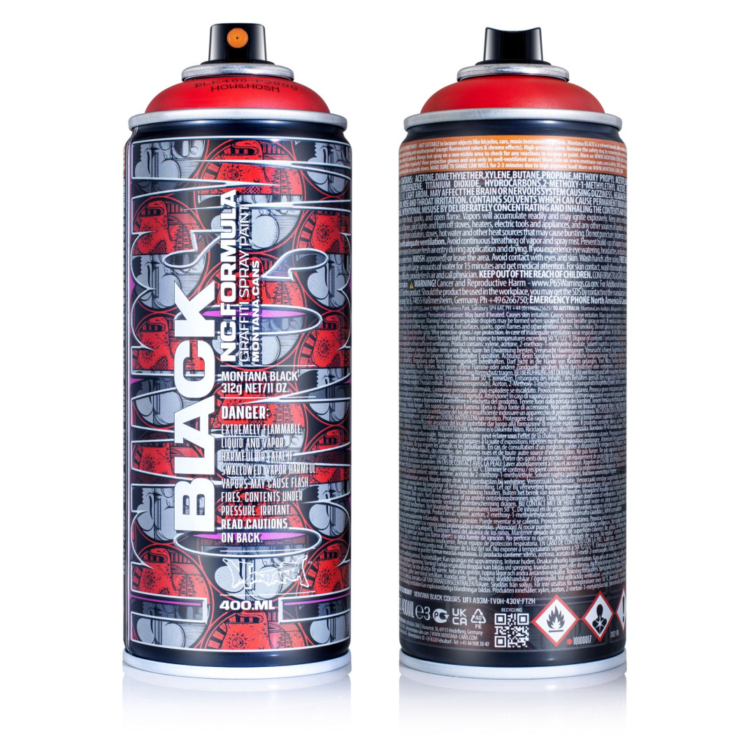 Montana Black Artist Edition How & Nosm 400ml — лимитированный баллон с участием нью-йоркских художников How и Nosm. 24-я по счету баночка из серии Artist Edition. Выбор цвета P3000 Power Red один из самых ярких красных цветов: оттенок является краеугольным камнем их цветовых схем. Помимо градиентов розового и серого, красный является одним из трех знаковых цветов. Включая черный и белый, красный стал на ровне для дуэта, сначала из-за своей практичности, а затем по выбору. Комбинации красного, черного и белого, какими бы привлекательными они ни были, функционируют как визитная карточка. Именно этими оттенками запоминаются их всемирно известные фрески и изобразительное искусство.