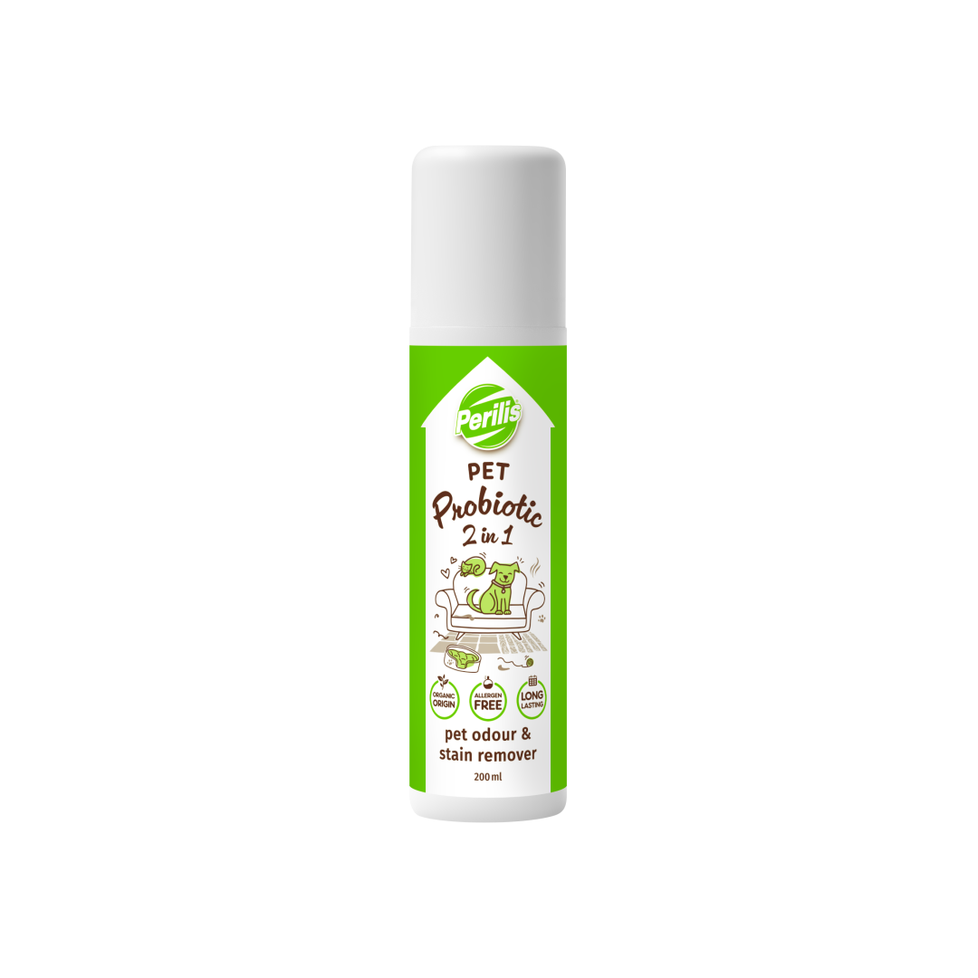 Пятновыводитель и нейтрализатор запахов животных пробиотический PERILIS двойного действия – препарат для устранения запахов и загрязнений, вызванных домашними животными, содержит пробиотические бактерии и ферменты. Нейтрализует запахи и очищает пятна от мочи, рвоты или дефекации вашего питомца, не повреждая обработанные поверхности. Безвреден для людей и животных. С органическим происхождением и продолжительным эффектом. Без аллергенов.