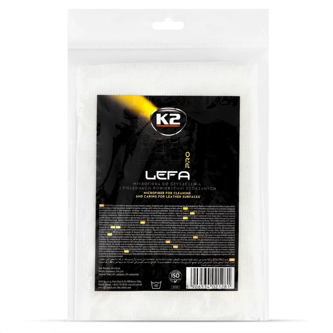Полотенце K2 — для чистки и ухода за кожаными поверхностями. Структура полотенца нежна к коже, не вызывает царапин и повреждений. Впитывая способность позволяет удалять загрязнения и остатки моющих средств из кожи.