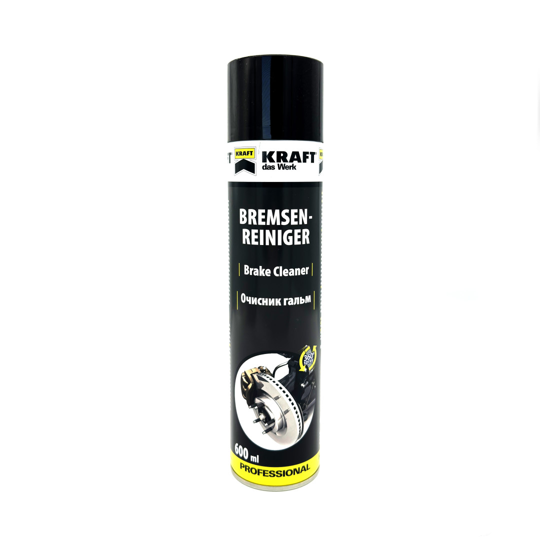 Очиститель тормозов KRAFT – универсальный очиститель и обезжириватель для легковых и грузовых автомобилей, мотоциклов, велосипедов, металлических поверхностей.