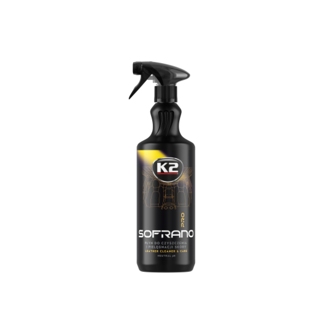 K2 Sofrano Pro Leather Cleaner – чистящее и защищающее средство от стирания и растрескивания. Предотвращает впитывание пота из рук (в случае кожаного руля). Делает кожу матовой и естественно немного грубой на ощупь. Придает коже мягкость и упругость. Рекомендуется наносить средство салфеткой из микрофибры. Обладает нейтральным pH.