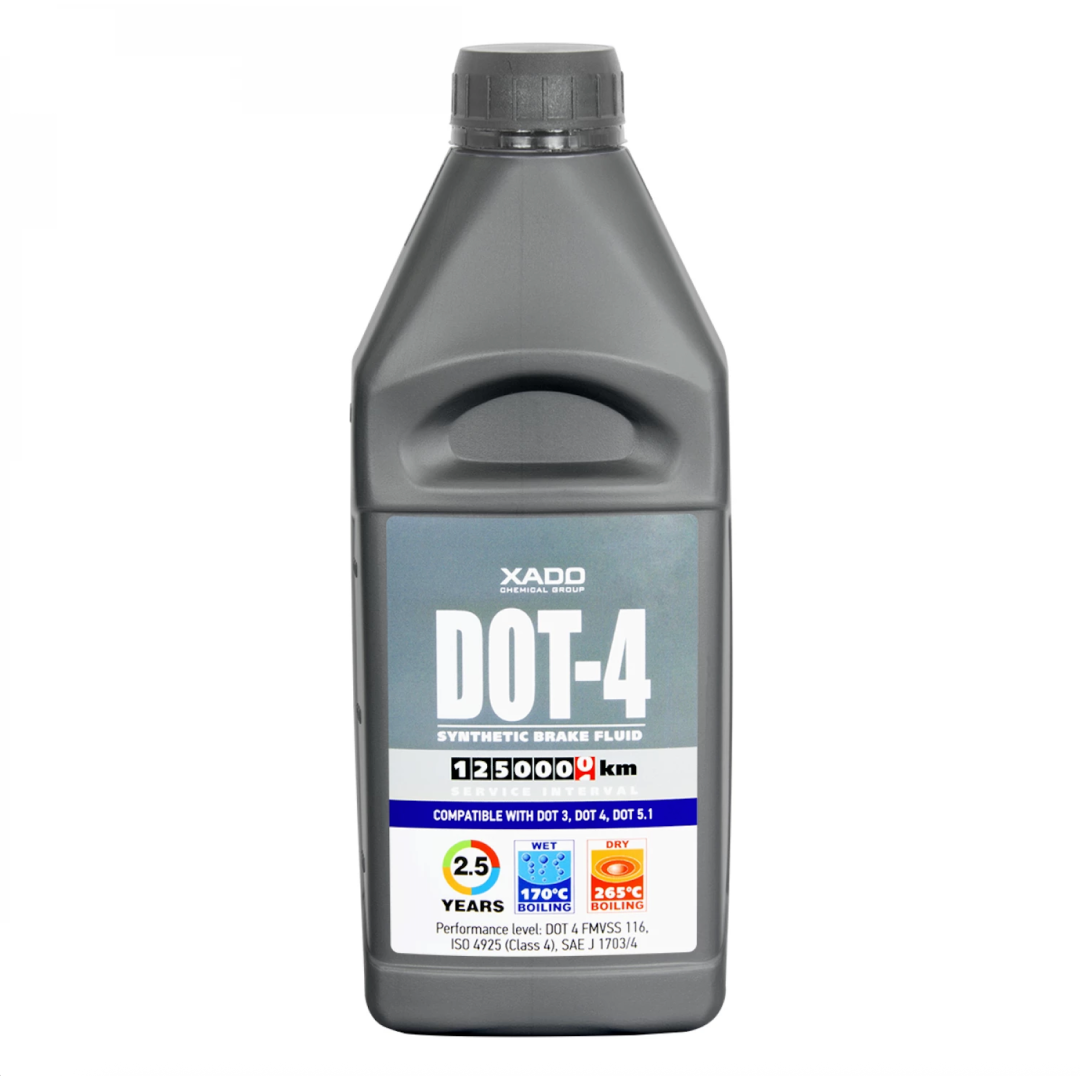 Синтетическая тормозная жидкость XADO DOT-4. Совместимость DOT 3, DOT 4, DOT 5.1. Обеспечивает надежную и безопасную работу всех типов тормозных систем автомобилей. Мгновенно передает усилия водителя с педали тормоза к колодкам тормозной системы. Имеет высокую температуру влажного кипения (более +170 °С), благодаря чему предотвращает провал тормозов. Обеспечивает быстрый теплоотвод тормозов.