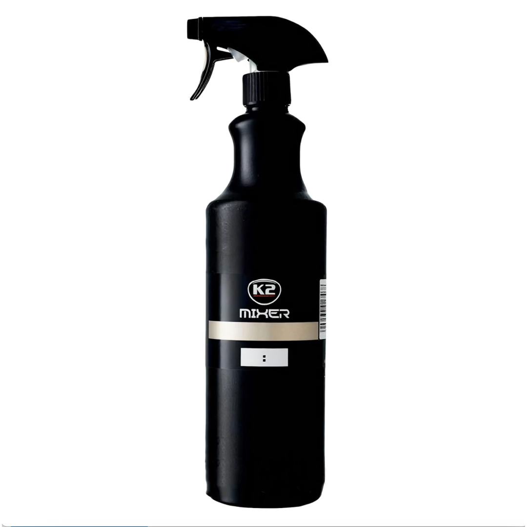 K2 MIXER — крепкая и надежная пустая бутылка из полиэтилена высокой плотности (HDPE) объемом 1 литр. Подходит для хранения и использования как кислотных, так и щелочных средств. Благодаря удобной эргономичной форме бутылка обеспечивает комфорт в работе, а прозрачная мерная шкала позволяет легко контролировать остаток жидкости и точно дозировать при приготовлении растворов.