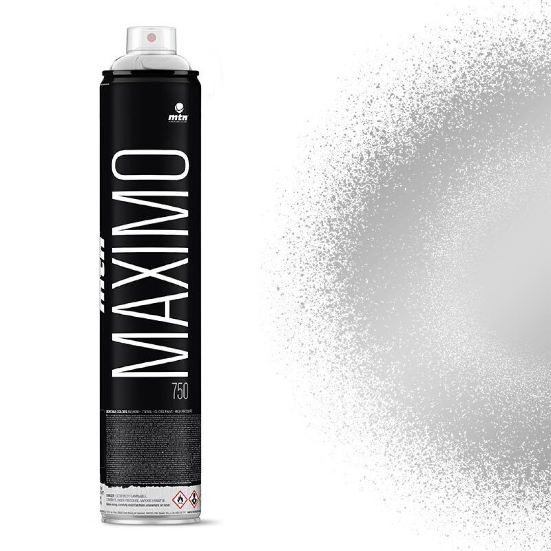MTN Maximo аэрозольная краска с большим объемом в 750 мл для покраски больших поверхностей. Доступен в базовых цветах: белый, черный и хромированное серебр. Хром создан из глянцевой акриловой эмали, изготовленной из высококачественных смол и листового алюминия. Черный и белый цвет произведены из высококачественной глянцевой алкидной эмали. Серебро покрывает 14 м² (приблизительно), белый и черный - 7 м² (приблизительно). В комплекте идет толстая розовая насадка, которая позволяет создавать линию свыше 6 см.