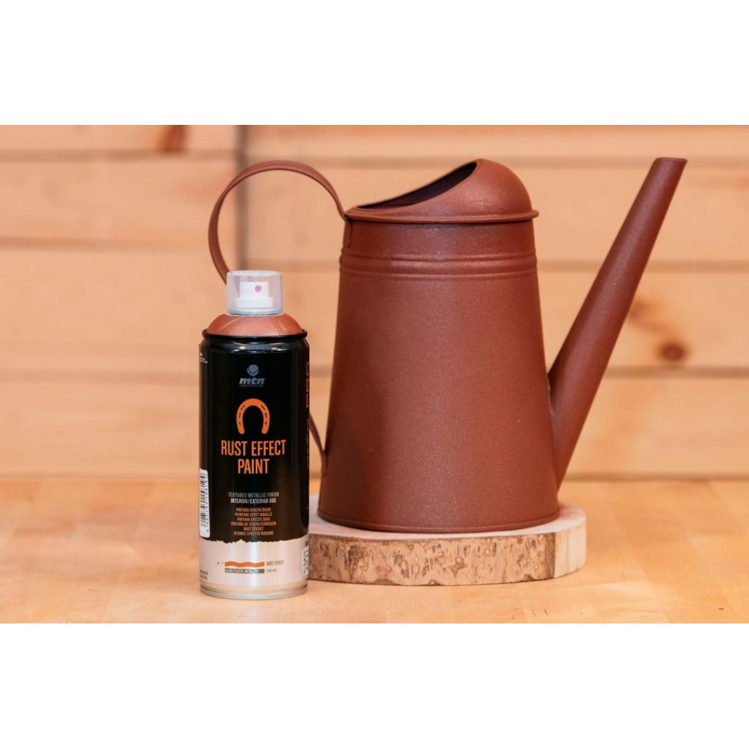 MTN Rust Effect быстросохнущая текстурированная декоративная акриловая краска, которая придаёт любым поверхностям эффект ржавого металла. Подходит для создания эффекта состаренного металла в декоре.