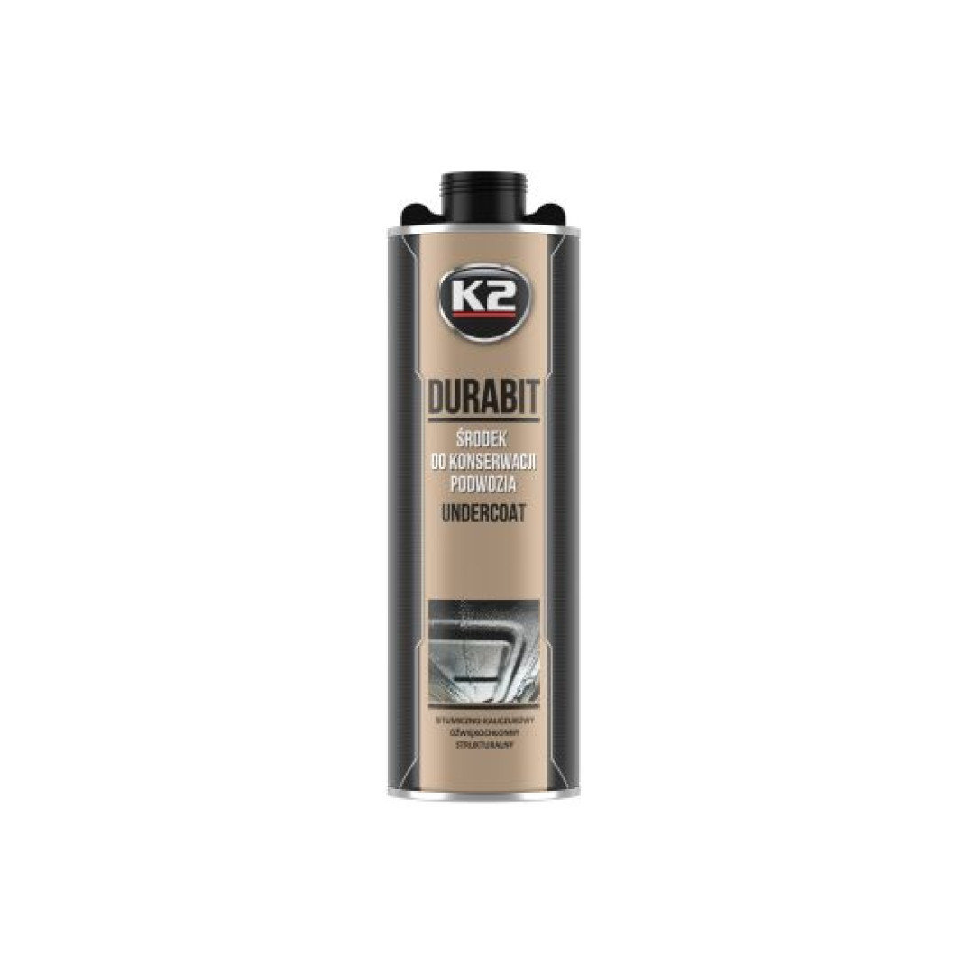 K2 DURABIT на битумной/резиновой основе. Защищает автомобильное шасси от механических воздействий: камни, вода и воздействие соли. Обладает шупомодавляющим эффектом. Образует гибкое и прочное защитное покрытие.