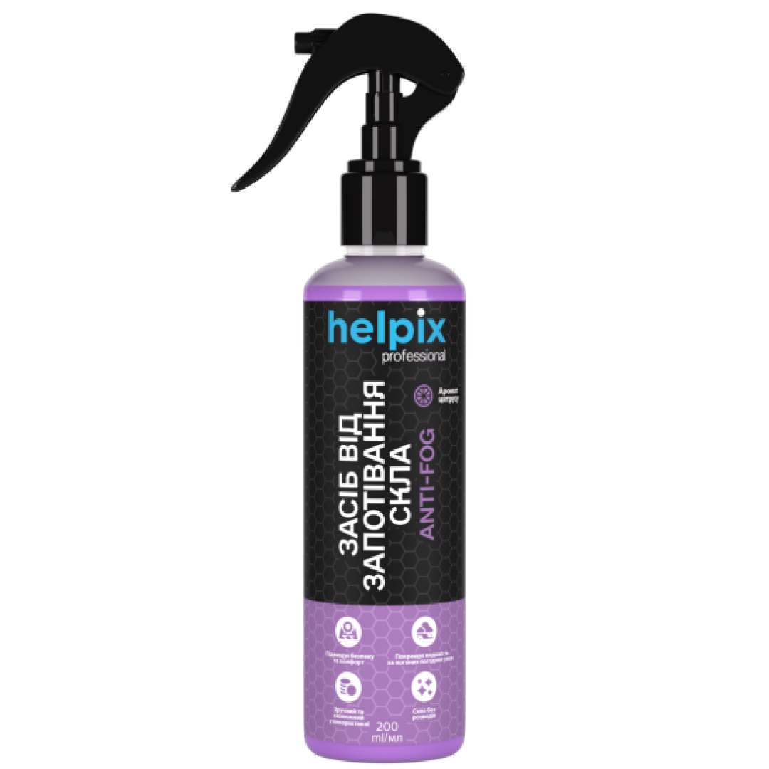 Применение: перед нанесением Anti-fog стекло необходимо тщательно подготовить - вымыть и обезжирить (хорошо подойдет средство Очиститель стекла от ТМ Helpix), вытереть насухо.