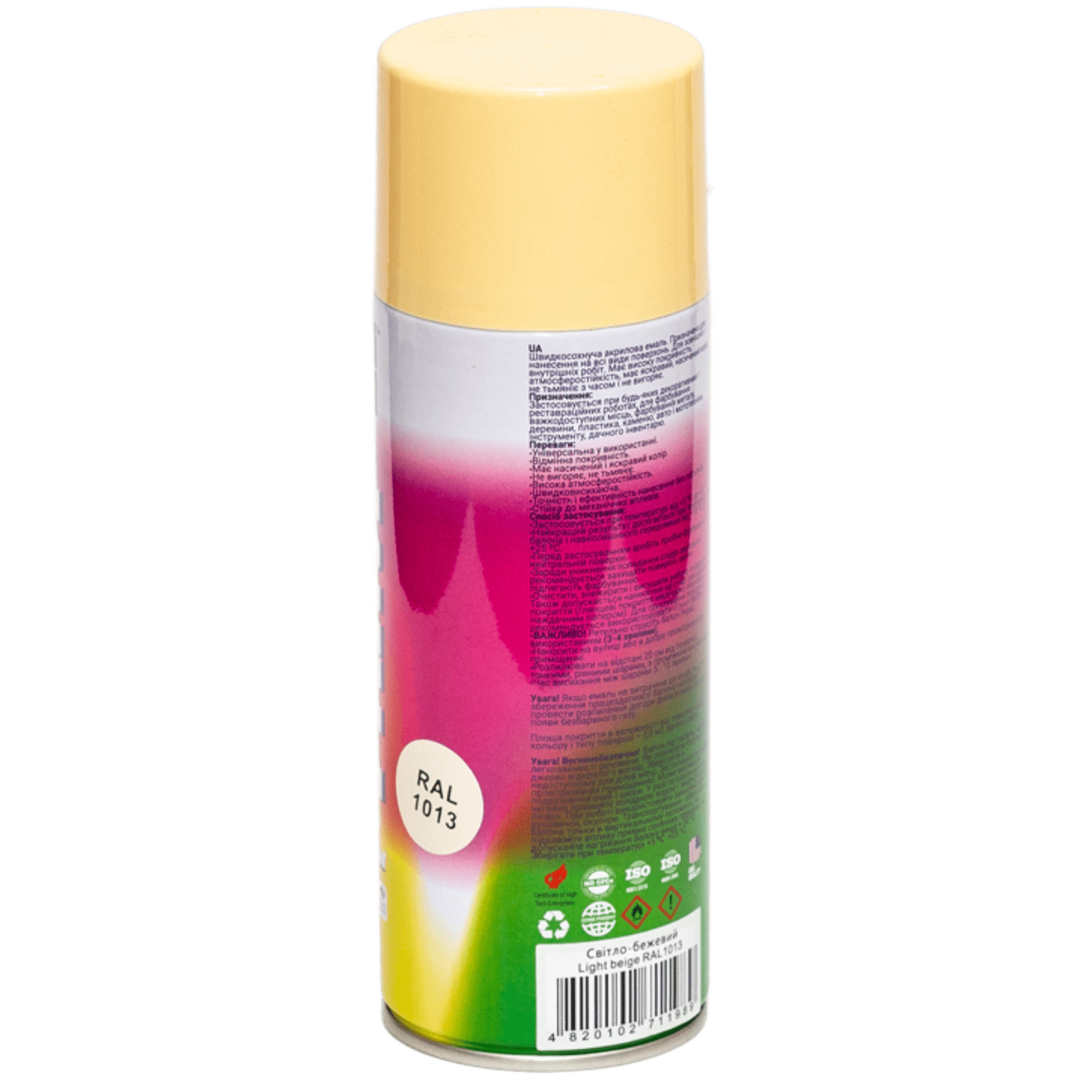 Основные характеристики Универсальная акриловая эрозольная эмаль BeLife светло-бежевая (RAL 1013)