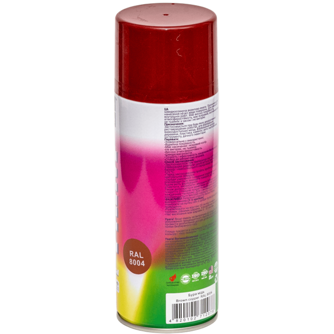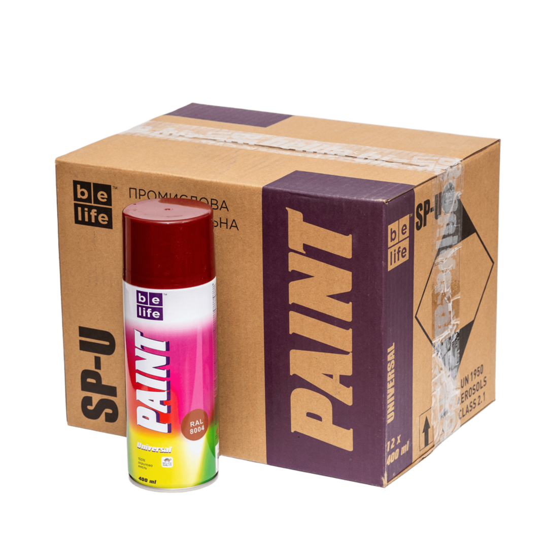 Основные характеристики Универсальная акриловая аэрозольная эмаль Belife бурая медь (RAL 8004)