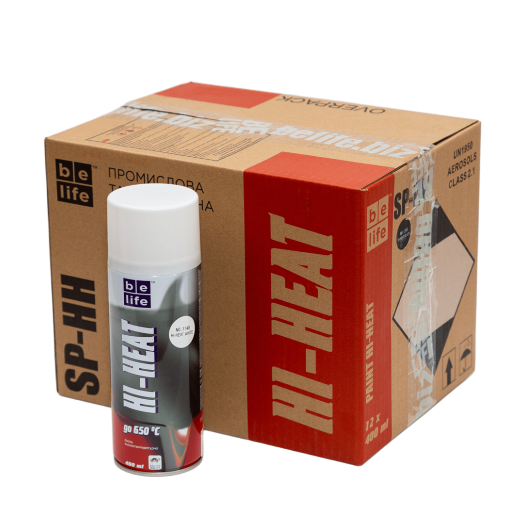 BeLife HI-Heat Paint – специализированная жаропрочная высококачественная краска для поверхностей, подвергающихся воздействию высоких температур до 205 °С. Супер эластичная, имеет стабильный цвет. Используется для покраски каминов, радиаторов, бойлеров, специализированного промышленного оборудования, а также для покраски деталей автомобиля, подверженных тепловой нагрузке, например выхлопной трубы.