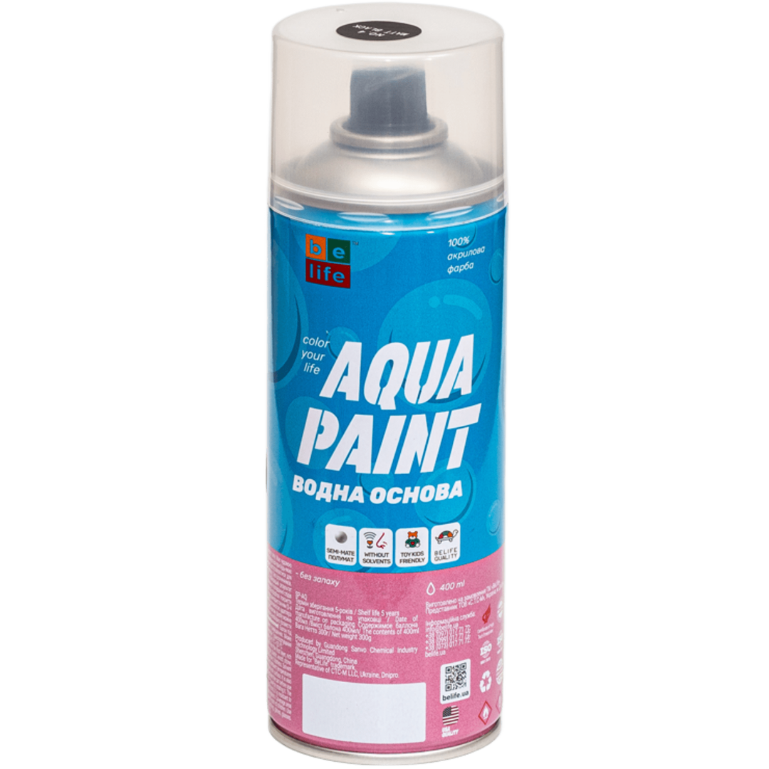 BeLife Spray Aqua – аэрозольная краска на водной основе, не содержащая растворителей. Не повреждает полистирол, практически без запаха. Краска имеет высокий уровень укрывистости, сочные цвета. Предназначена для покраски материалов любого типа: пластик, дерево, камень, металл, лоза, картон, ткань, керамика, стекло. Подходит для покраски полистирола, детских игрушек. Применяется внутри и снаружи помещений. Имеет матовую фактуру.