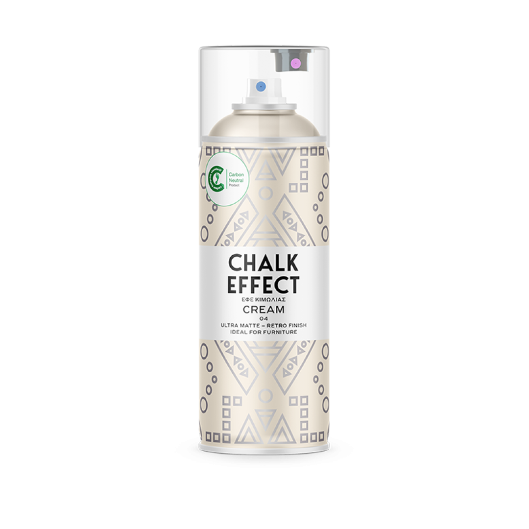 CHALK EFFECT COSMOS LAC акриловый спрей с меловым матовым эффектом. Отличная адгезия к разным поверхностям: дерево, меламин, холст, металл, ткань, стекло и картон. Имеет две насадки для отделки как небольших (white/blue soft cap), так и больших поверхностей (black pink cap). Большая площадь покрытия (до 3 м²).