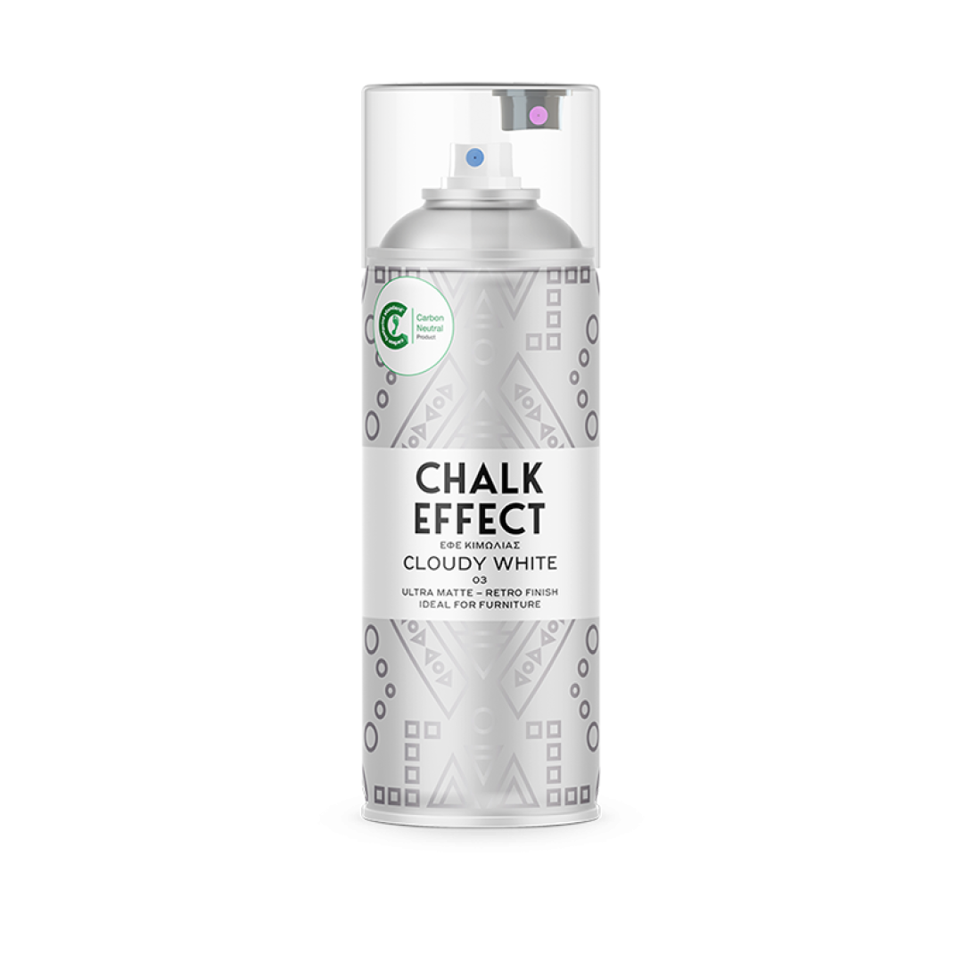 CHALK EFFECT COSMOS LAC акриловый спрей с меловым матовым эффектом. Отличная адгезия к разным поверхностям: дерево, меламин, холст, металл, ткань, стекло и картон. Имеет две насадки для отделки как небольших (white/blue soft cap), так и больших поверхностей (black pink cap). Большая площадь покрытия (до 3 м²).