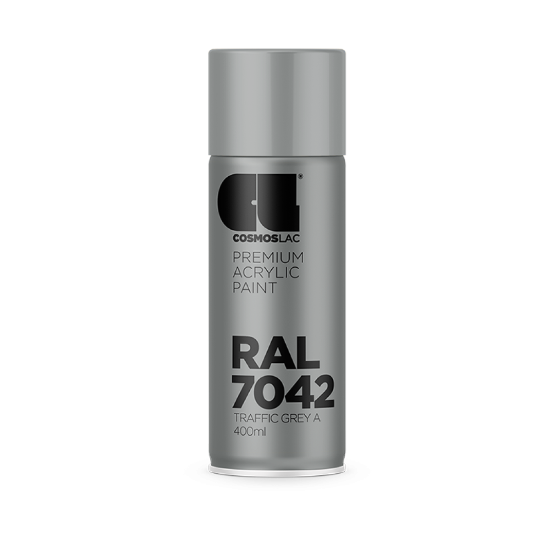 Описание Эмаль аэрозольная COSMOS LAC RAL 7042 транспортный серый матовый (0107042M)