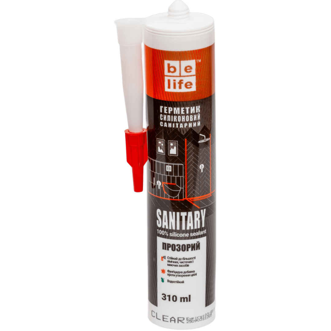 Описание Санитарный силиконовый герметик прозрачный BeLife (SS-310), 310 мл
