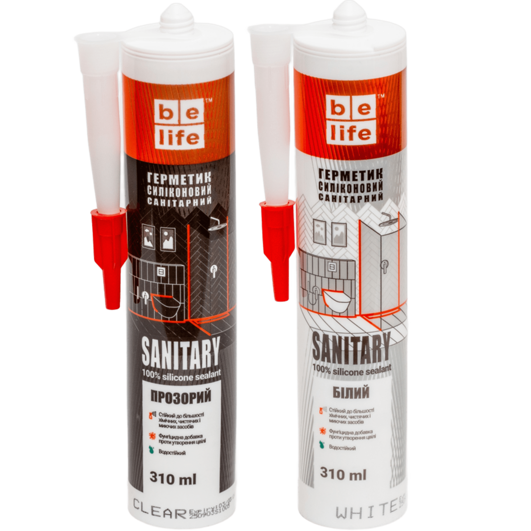 BeLife SILICONE 310 мл – санитарный силиконовый герметик в компактной упаковке. Содержит фунгициды (вещества антисептического действия, препятствующие образованию плесени), что позволяет использовать его в местах с повышенной влажностью. Атмосферостойкий, высокоэластичный. Отличная адгезия практически ко всем материалам: стеклу, керамической плитке, алюминию, дереву, окрашенным поверхностям, пластмассе. Устойчив к УФ излучению, большинству химических, чистящих и моющих средств. Высокая упругость после утверждения. Замедляет появление грибковой плесени. Морозостойкость –40°С до +120°С. Для герметизации санузлов, бассейнов, для швов и примыканий в ванных комнатах и душевых кабинах, для систем кондиционирования воздуха, для облицовочных покрытий внутри и снаружи домов, для кухонных раковин и столешниц из различных материалов, для заполнения швов в перегородках, навесов из поликарбонатных и поликарбонатных поли.