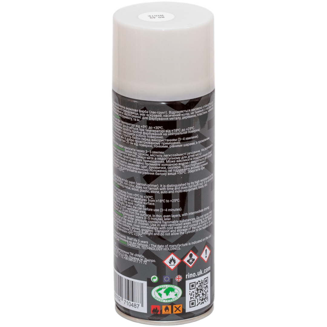 Описание Универсальная акриловая аэрозольная эмаль Rino белая (RP-40)